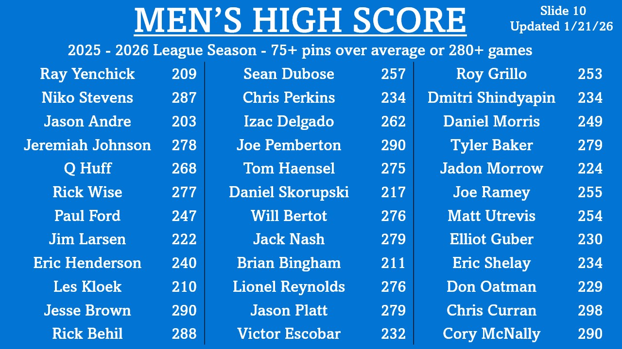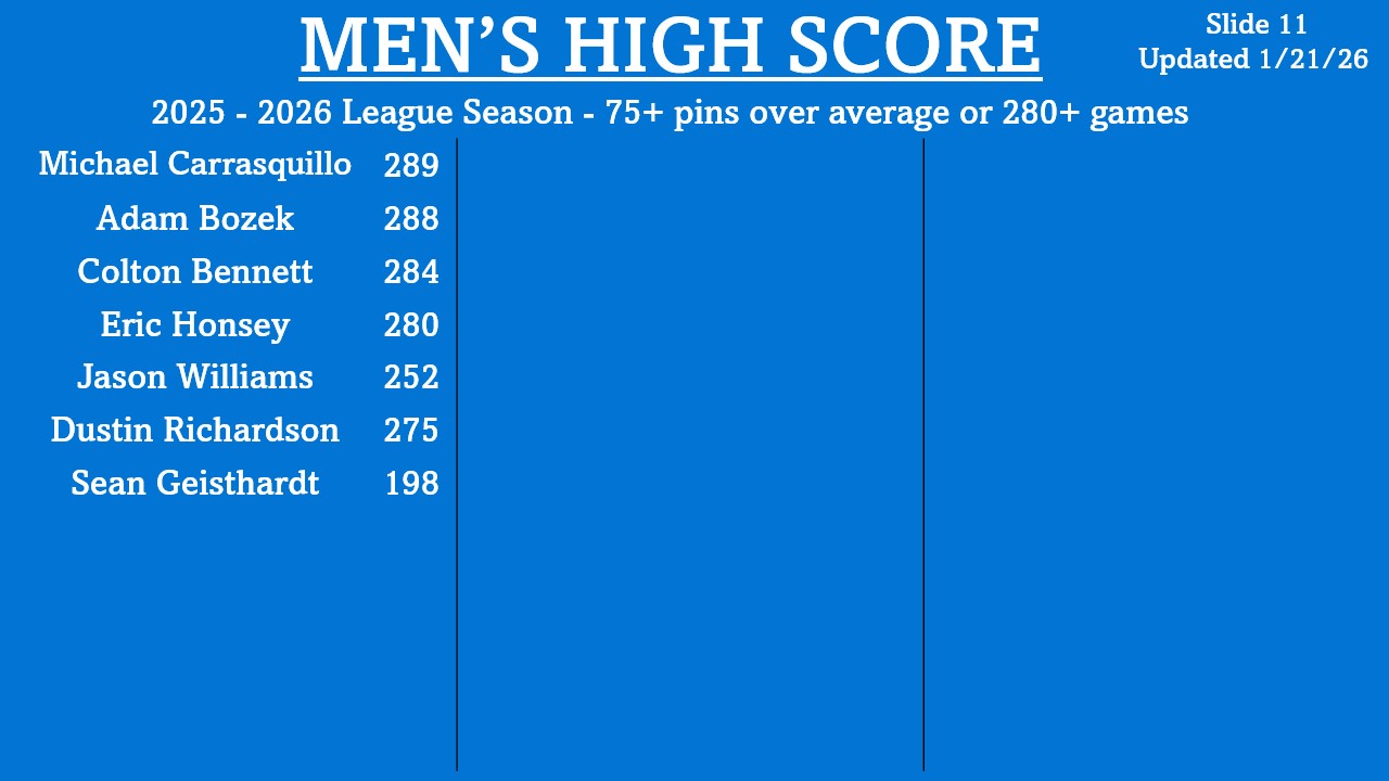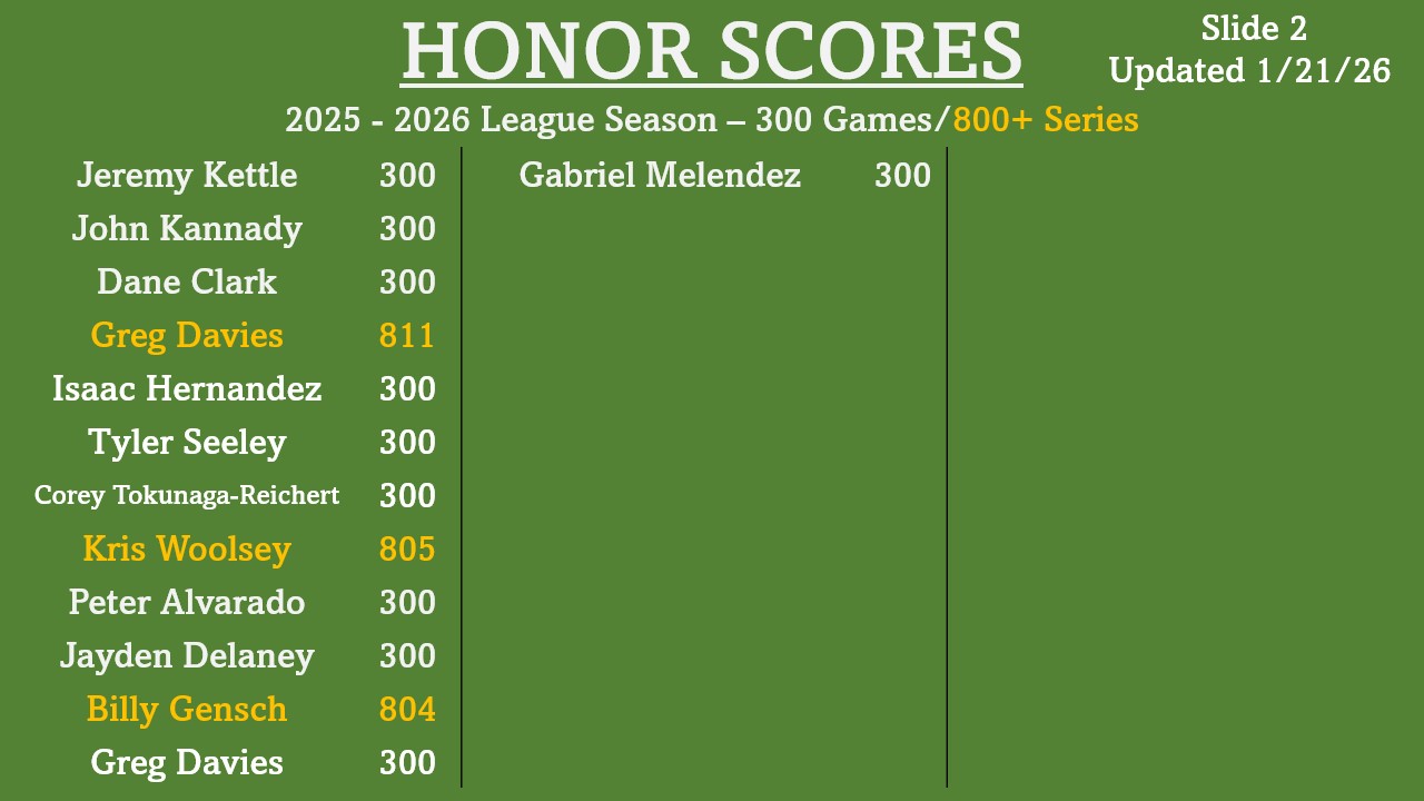 | Kris Koeltzow | 801 (Masters) 810 (Masters) | 10/12/24 10/13/24 | Multiple Lanes 9 & 10 |