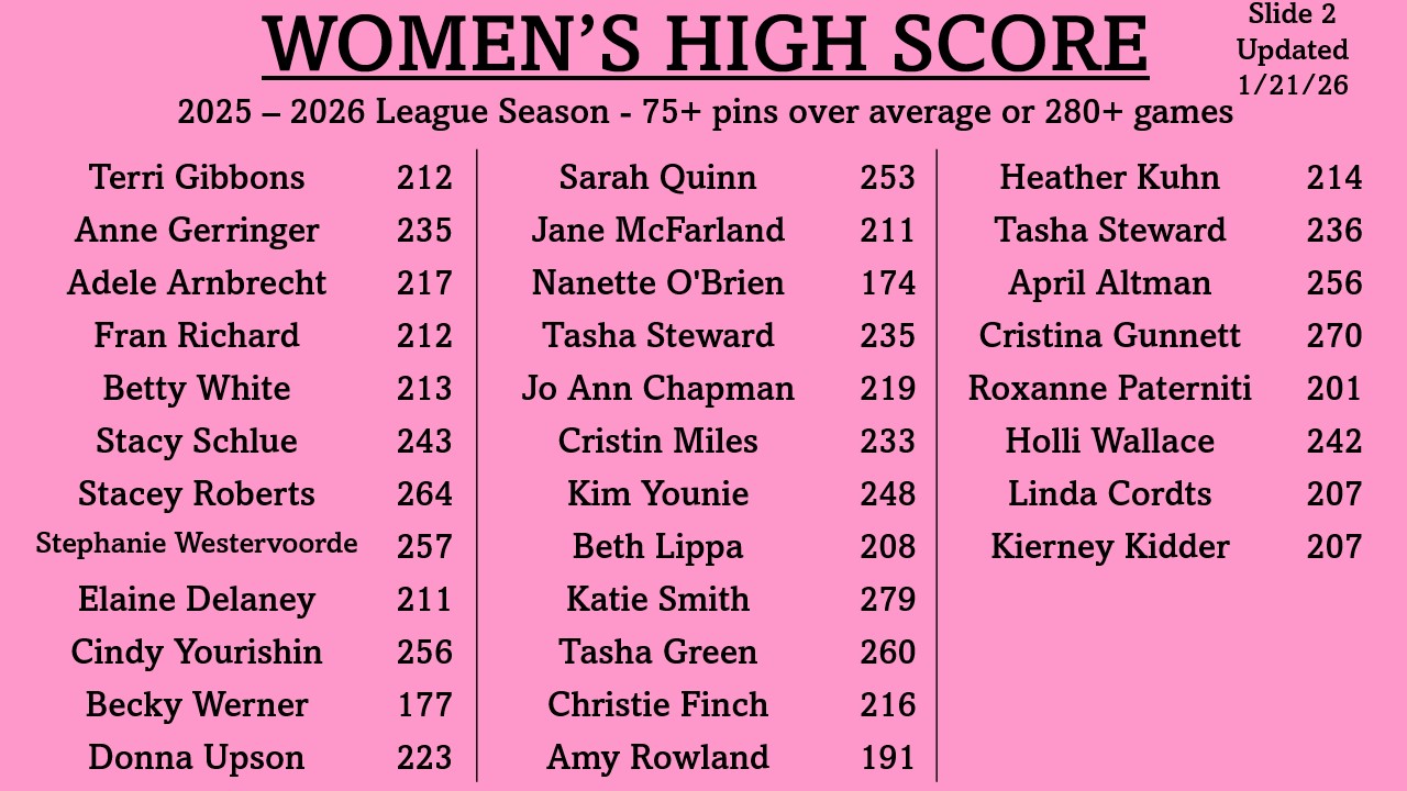 | Kris Woolsey | 805 | 12/28/25 | 5/6 33/34 25/26 |
