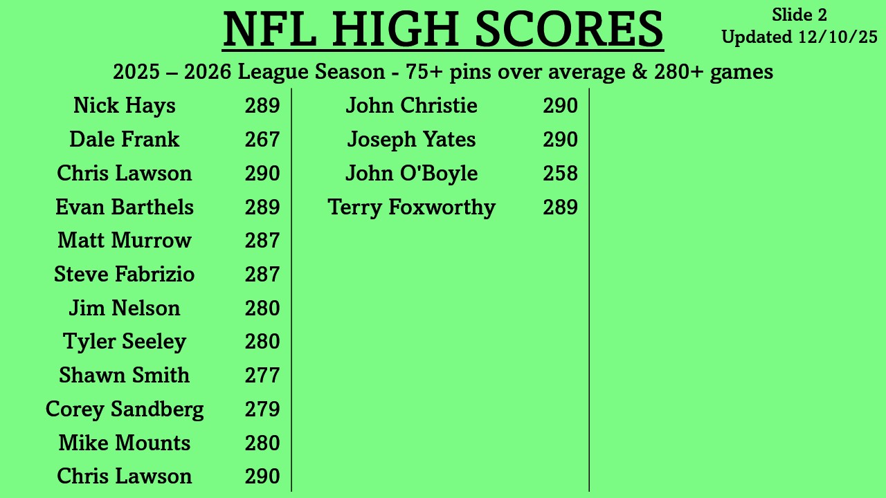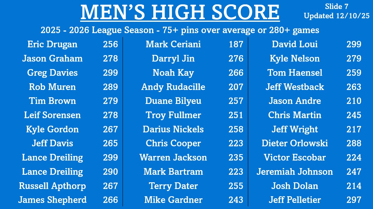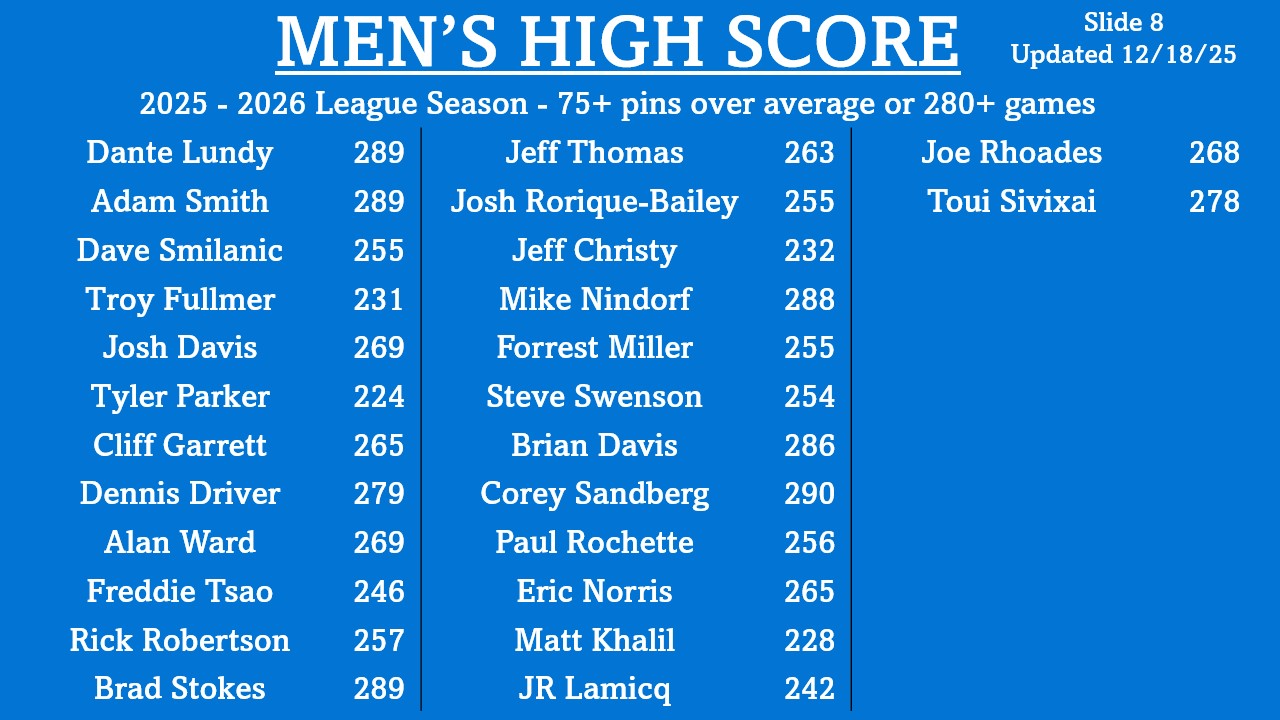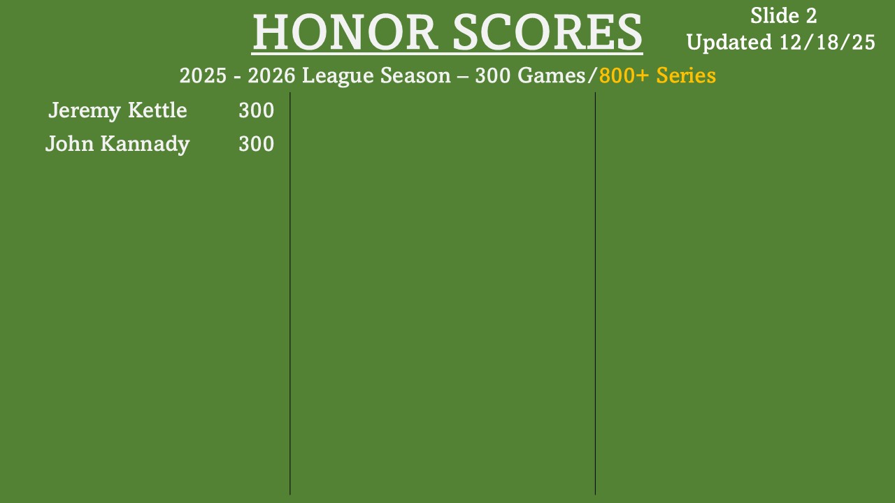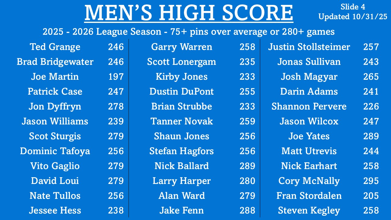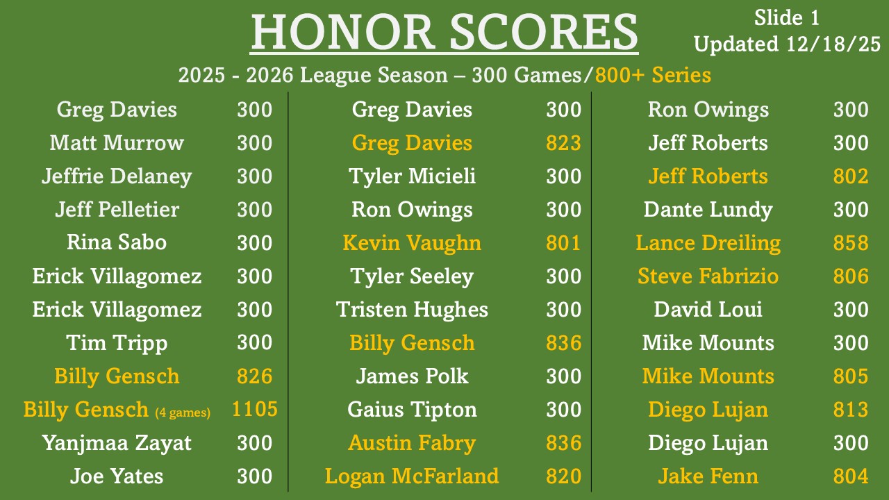 | Kris Koeltzow | 801 (Masters) 810 (Masters) | 10/12/24 10/13/24 | Multiple Lanes 9 & 10 |