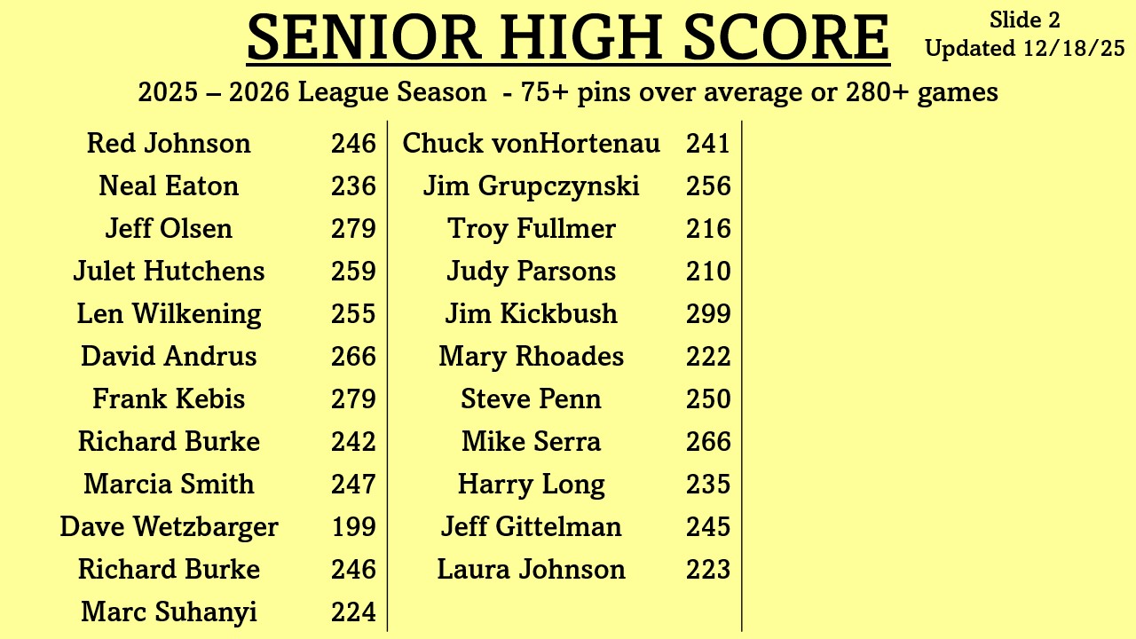 | Ron Owings | 825 | 11/27/24 | 39 & 40 |